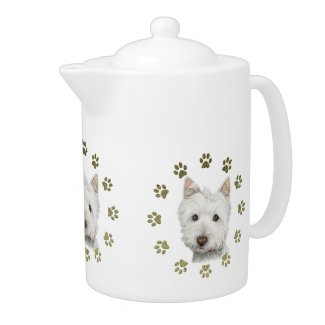 Cute Westie Dog and Paws Teapot